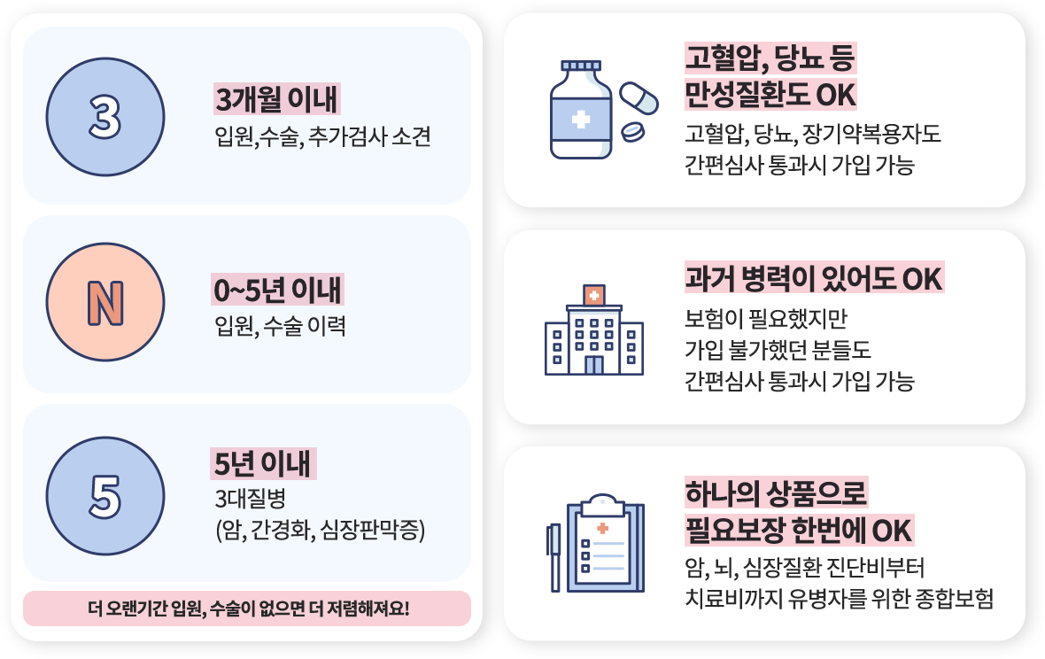 위 3가지 질문이 대표적 심사기준으로 보험사, 상품별 상이